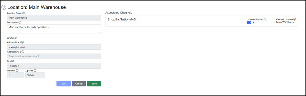 The Associated Channels represents the store which the Location is connected.