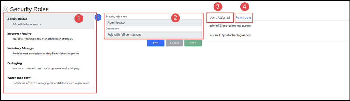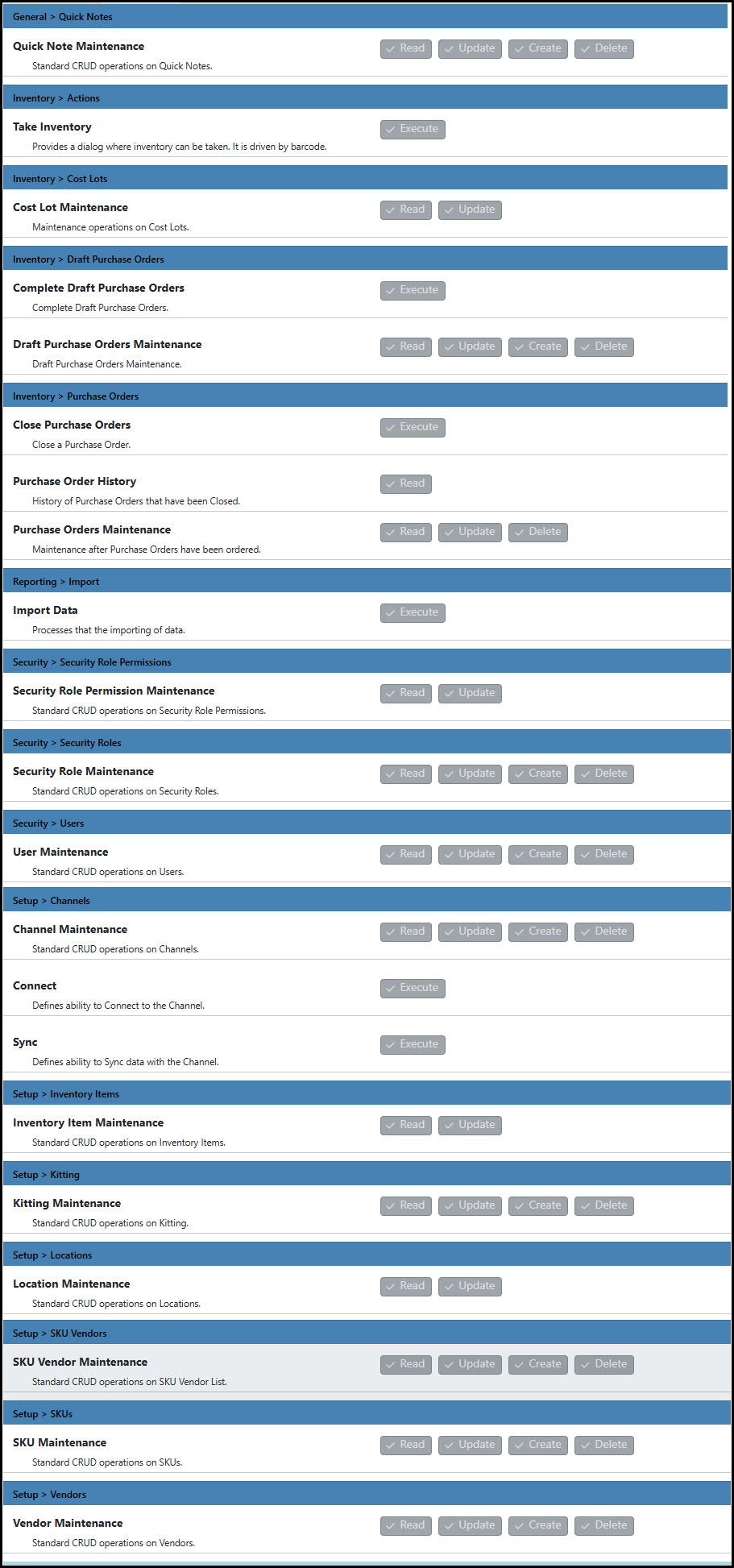 | Introduction | The Security Roles View provides the ability to create and manage permission roles that are assigned to users for role-based security access. |