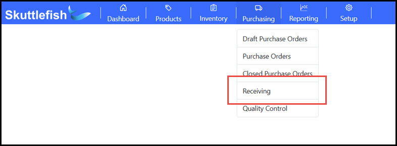 The Shipment Receiving grid is accessible by navigating to Purchasing > Receiving.